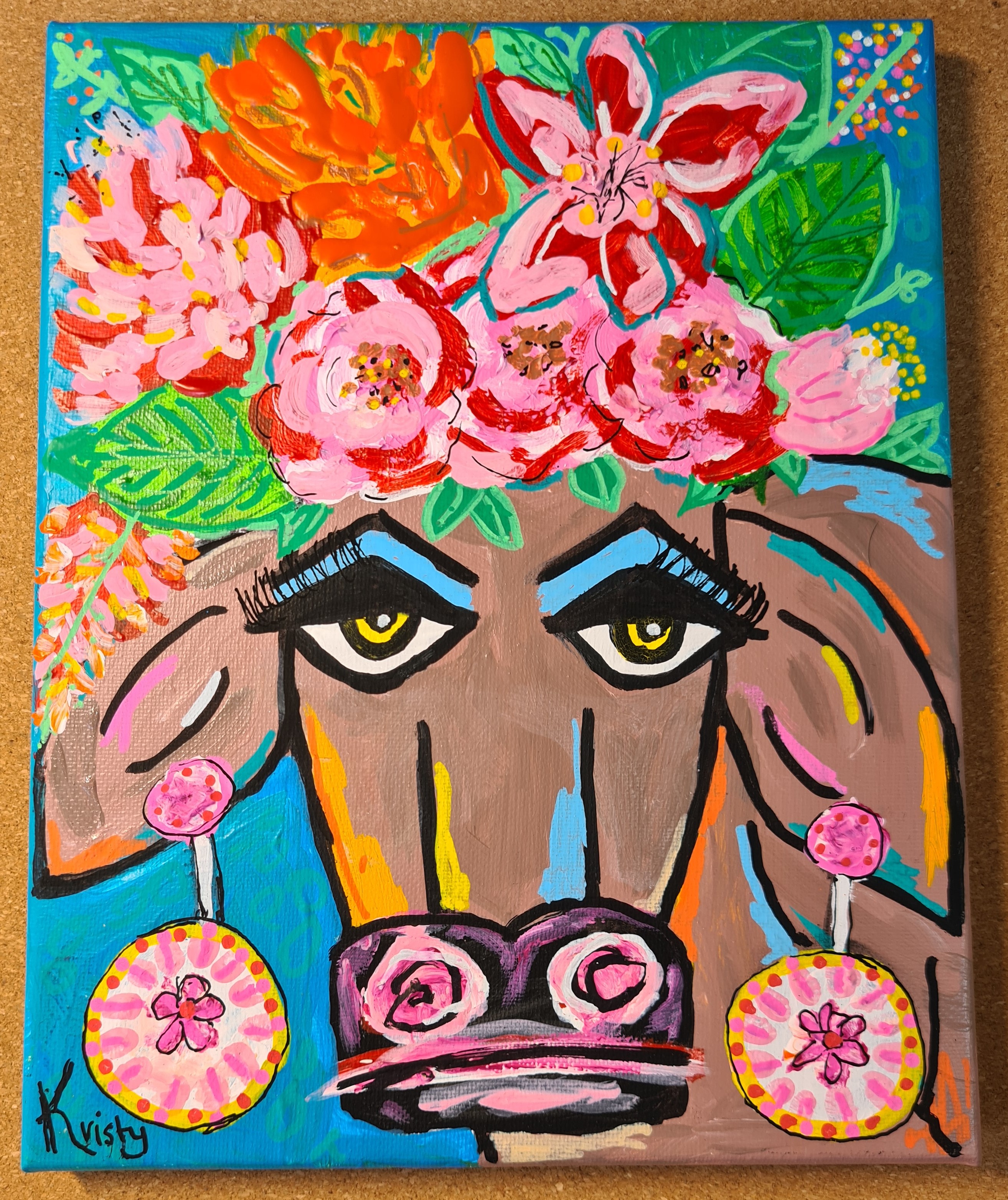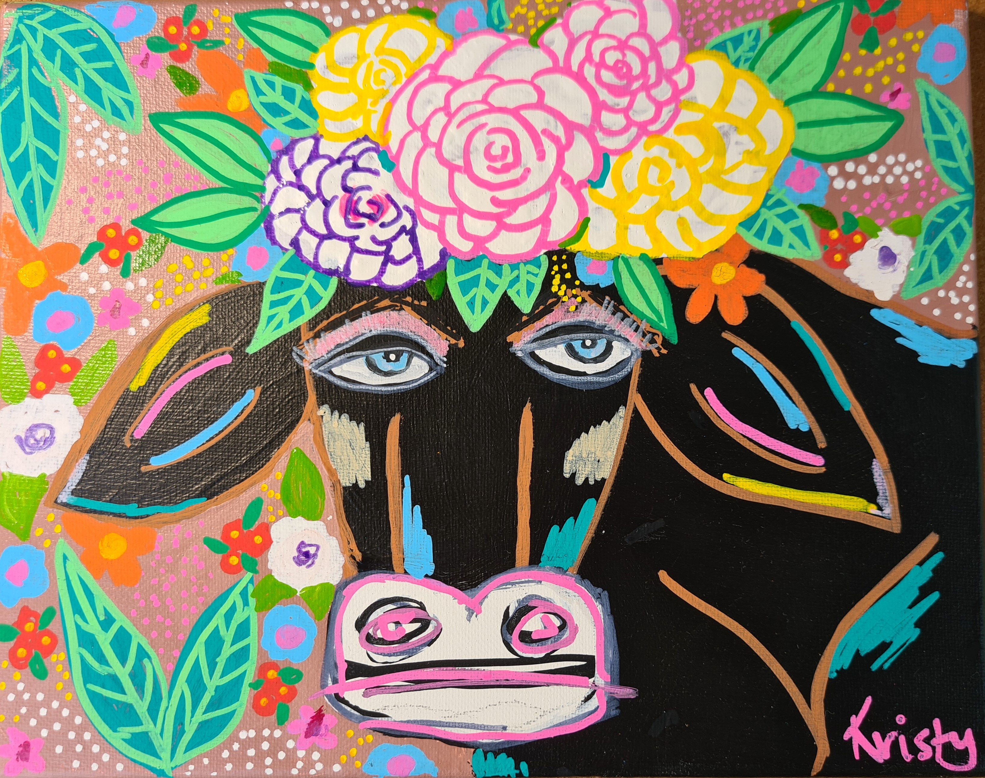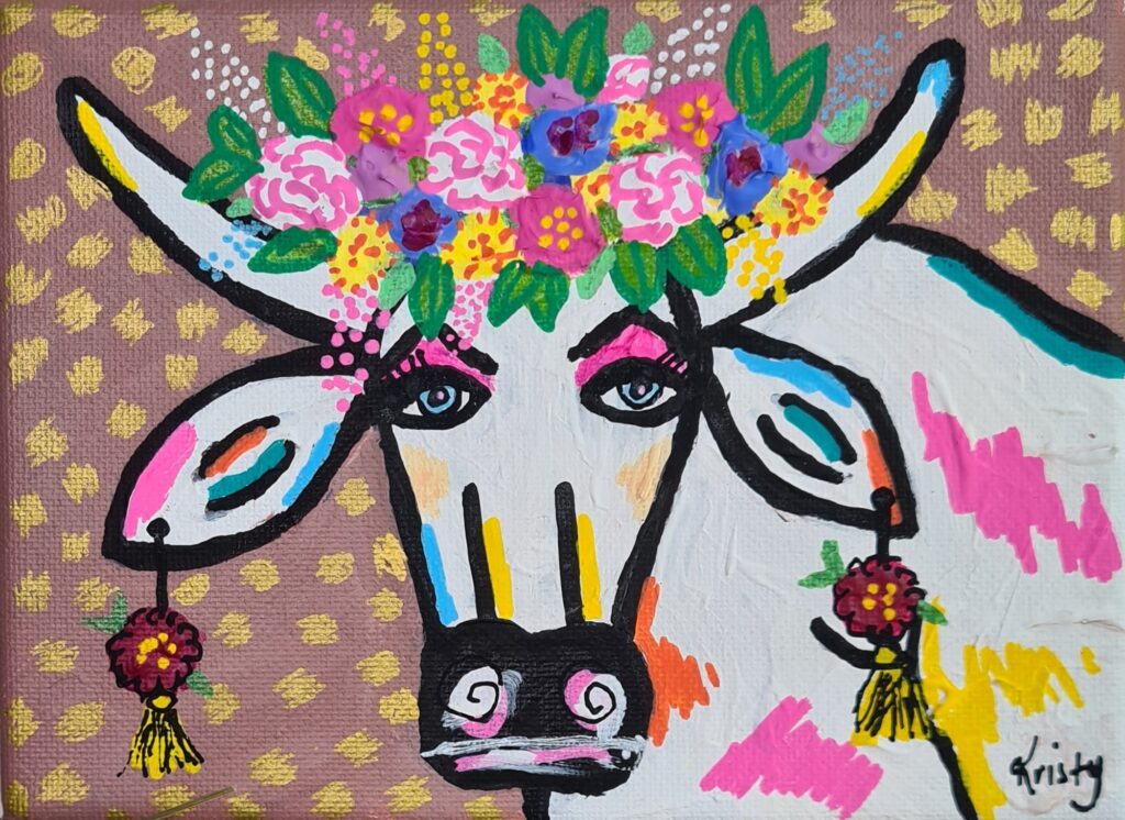 Meet Betty, Betty is a bit tired today, she was up all night with her calf. But she has got up put on a happy face, her makeup and some flowers in her hair and is ready to just get on with it! You rock Betty!